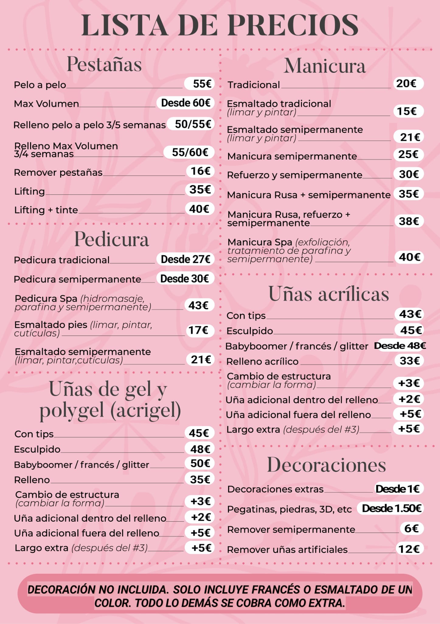 *DECORACIÓN NO INCLUIDA EN EL PRECIO. EL COSTE DE TU SET DE UÑAS DEPENDE DEL LARGO, DISEÑO, PUNTA, SISTEMA DE UÑAS, ETC… PIDE INFORMACIÓN ANTES DE HACER TU RESERVA.